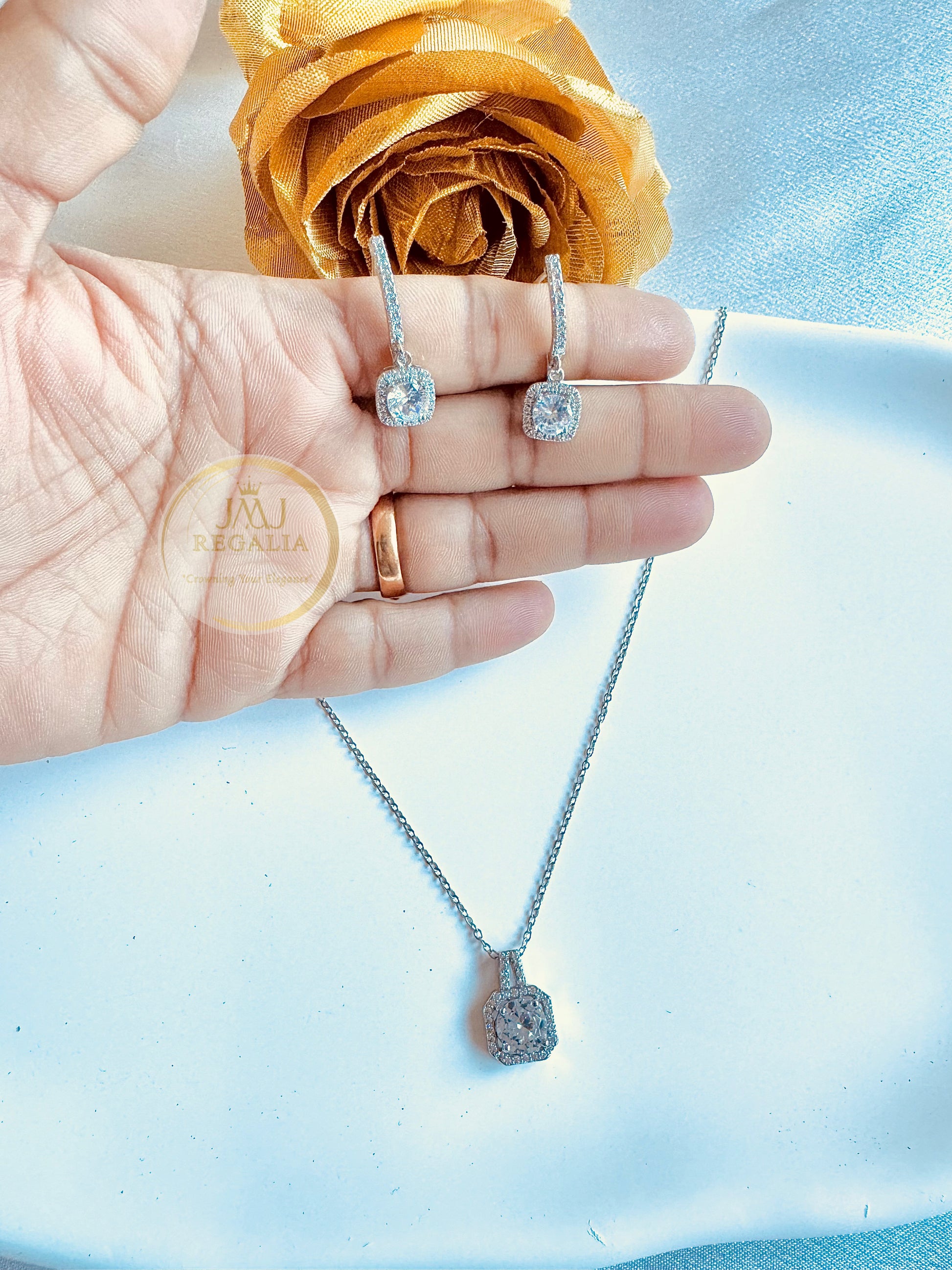 Sleek, elegant necklace with earring with a minimalist vibe