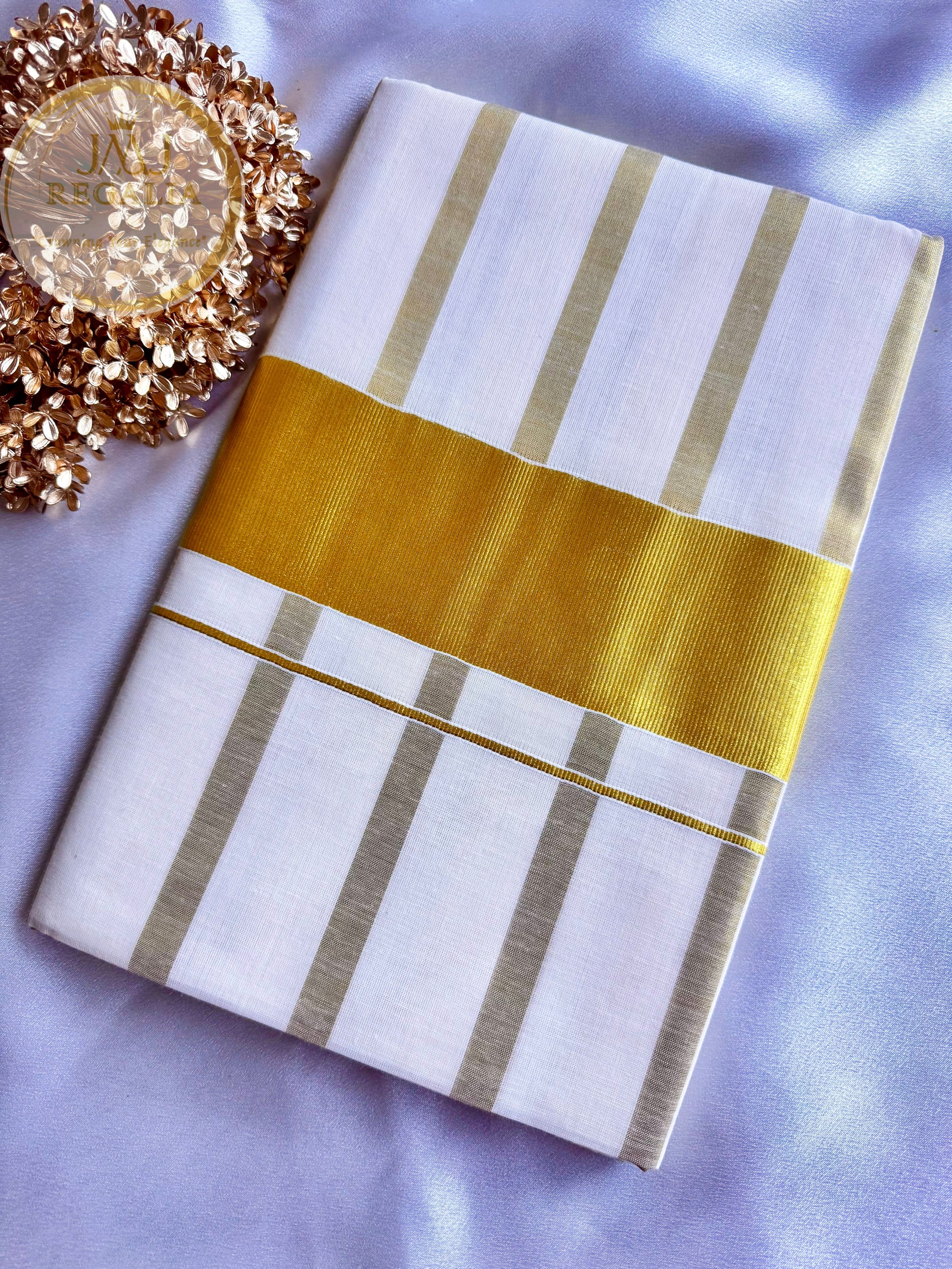 Creamy white saree with antique gold detailing – heritage style meets modern simplicity