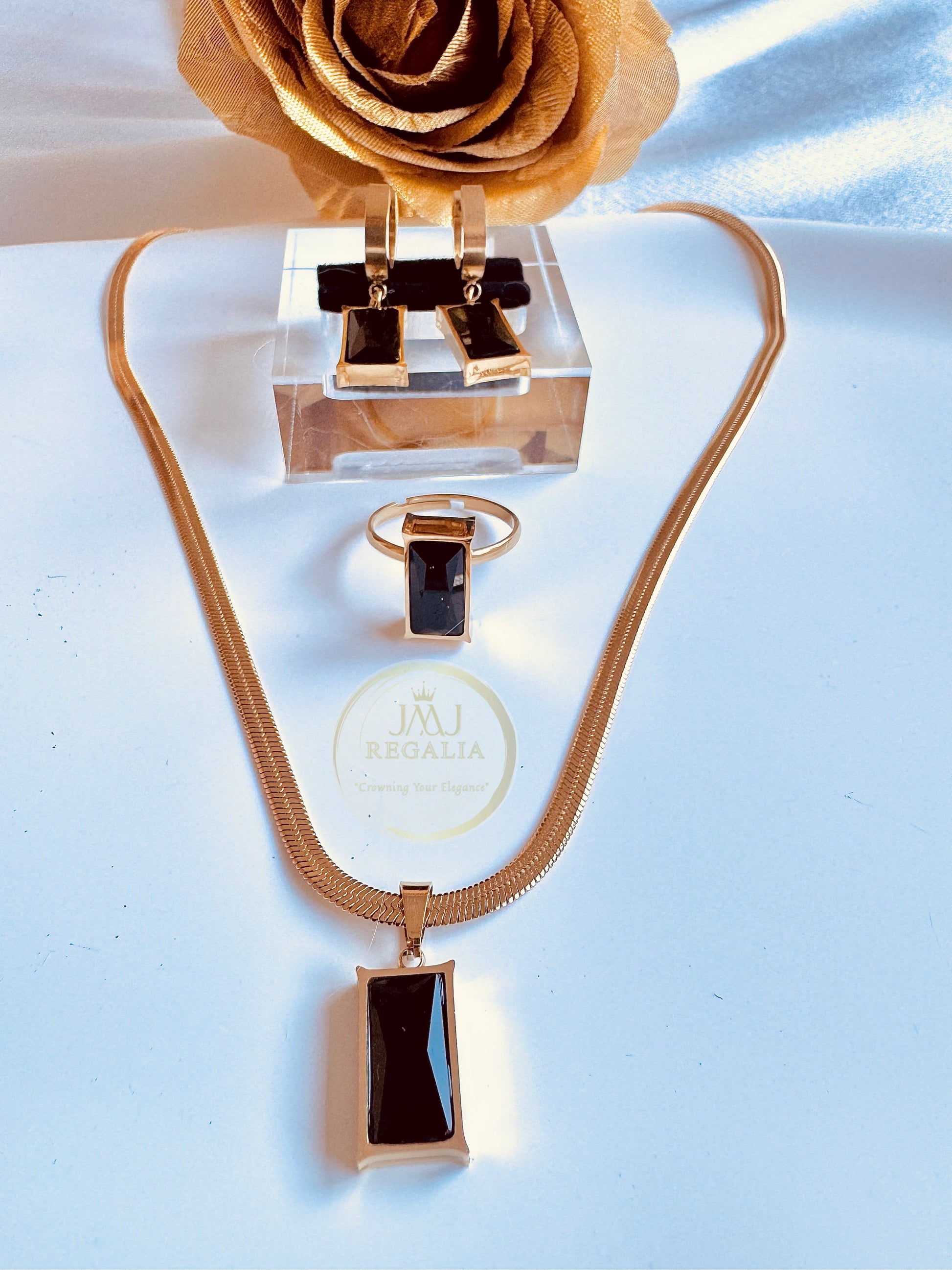 Classic beauty square Stainless Steel Electroplating Jewelry Sets with adjustable ring and hoop earrings